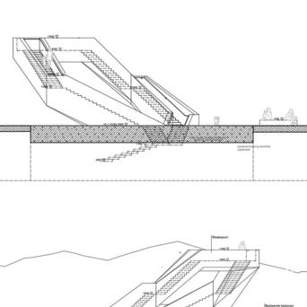 采用混凝土打造观景台,旨在抵御恶劣的海洋气候。项目结构满足设计者所期望的坚固性,并且混凝土材质并不需要频繁的维护。观景台的材质与滨海长廊所使用的材质相同,构筑物虽独立站立,在其结构的周围和下方都有一定的伸展。