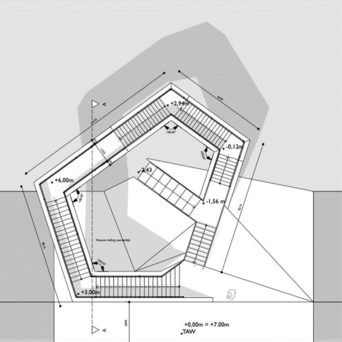 建筑呈环状,由相互成108°角的楼梯段组成,动感十足。每段楼梯之间都有一个平台可作为休息点,从这些休息点能够观赏到周围不同的景色。楼梯的结构也作为了观景台的支撑柱。